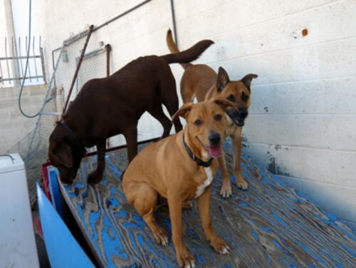 私が従姉妹をアテンドしている間、ルーキーはデイケアに預けていました。 新しいお友達(弟分?)スクーターと飛び回って遊んでいたようです。 いちばん手前がスクーター。素直で良い犬です。