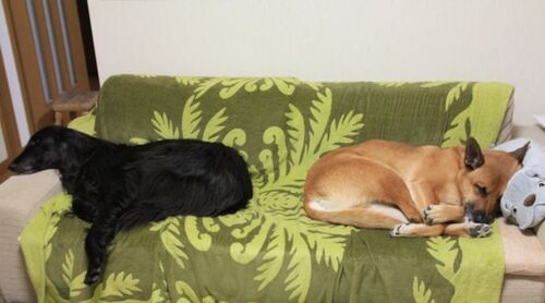 1日目。ジョナ君はソファに上がる時も、ベッドに上がる時も、ルーキーに遠慮していました。 ルーキーもジョナ君が私に甘えていると、ちょっとムッとした目をしていたりして、目が離せない感じ。 目を離す時は公平に二頭ともケージへ。ルーキーはケージブレイ…