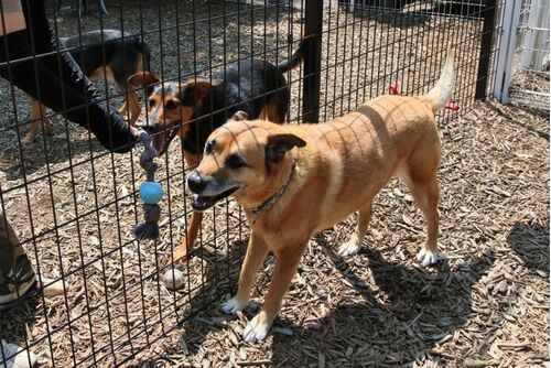 今日は大好きなお友達ラビちゃん&エムちゃんと一緒にドッグランに遊びに来ました ルーキーのこの笑顔♪ ラビママが柵越しにラビちゃんと引っ張りっこしてごらん、と誘います。 ルーキーやってみたいけれど、ちょっと勇気がなくて、ラビママにボール取って〜…